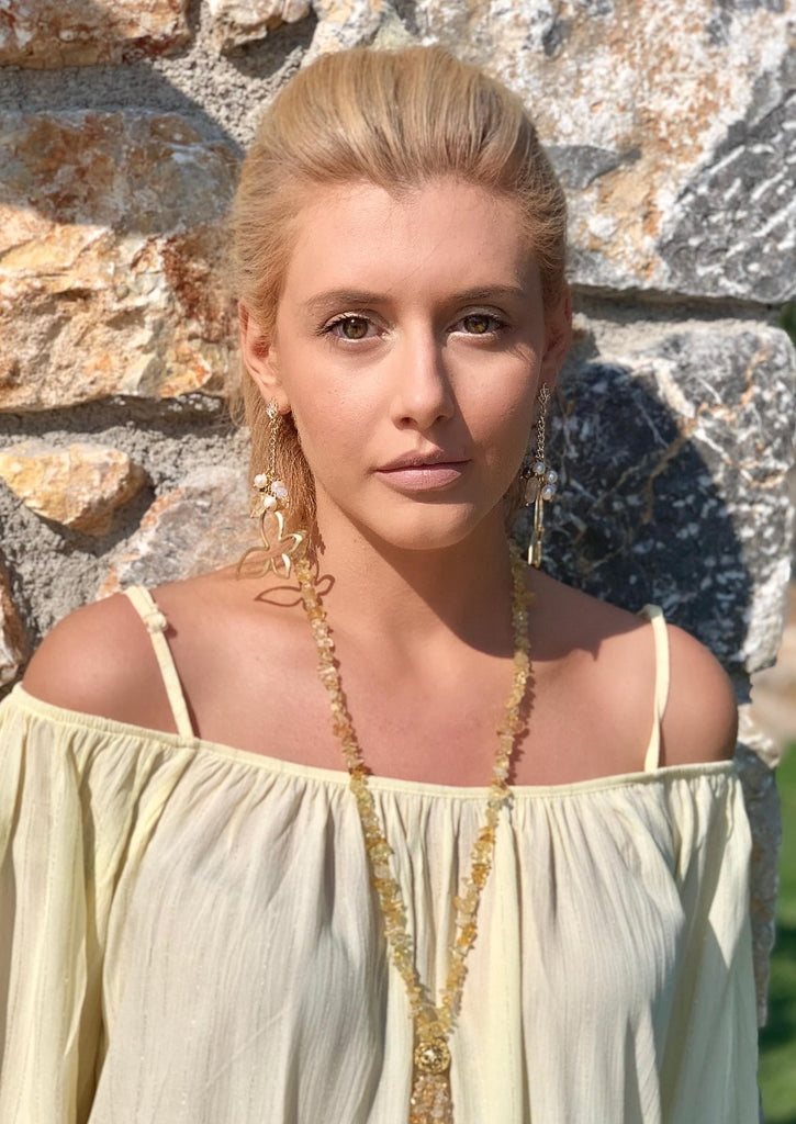 Gold Butterfly Statement Long Dangling Earrings with Cubic Zirconia Natural Pearls Citrine Quartz Joel Handmade