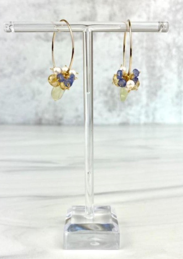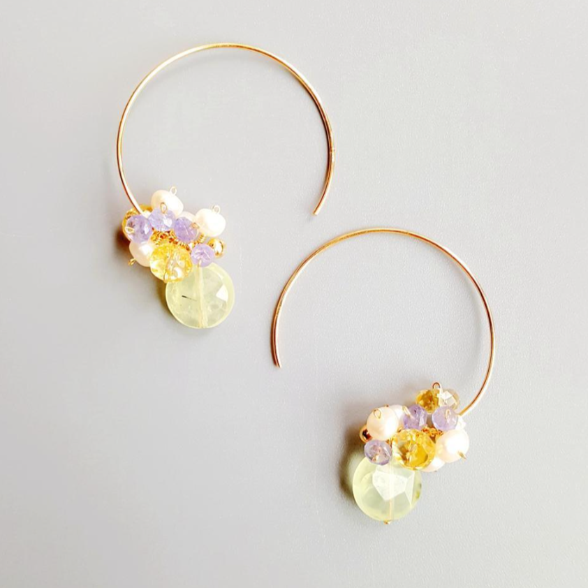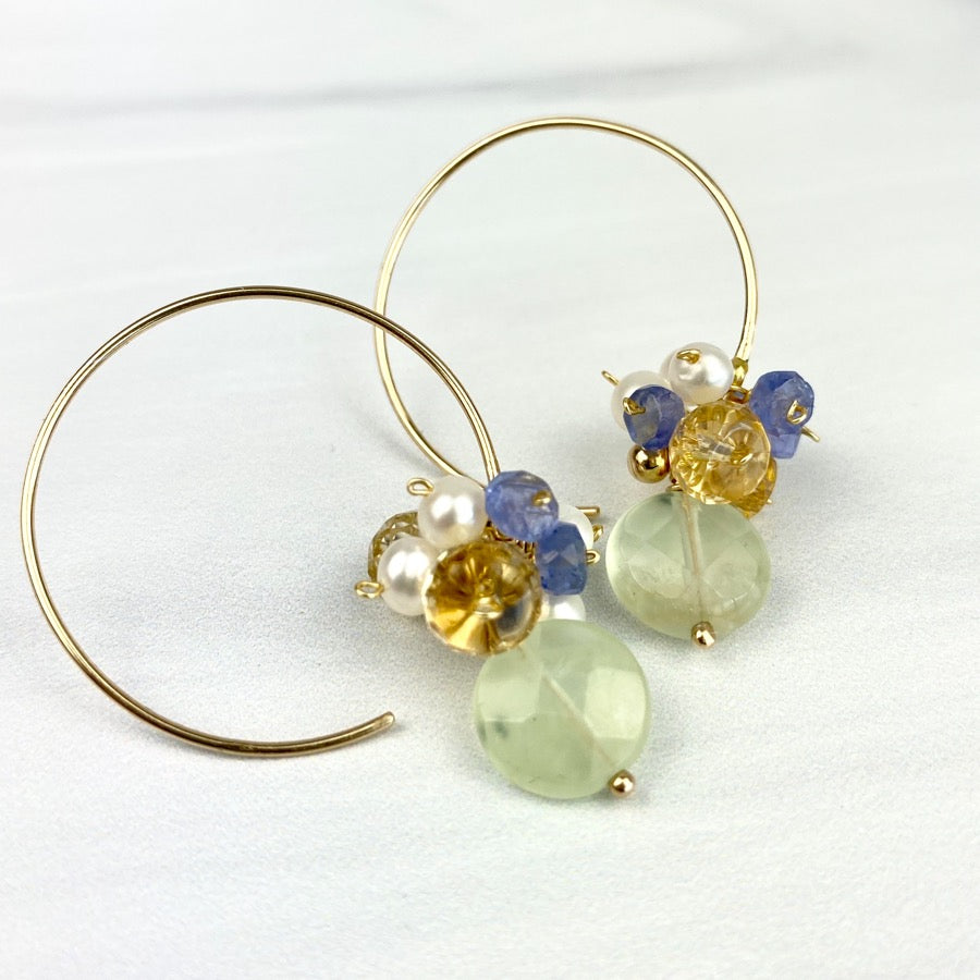 Hoop Earrings Sterling Silver 14K Gold Plated Hand Wrapped Semiprecious Stones, Citrine Quartz, Tanzanite, Pearls Joel handmade