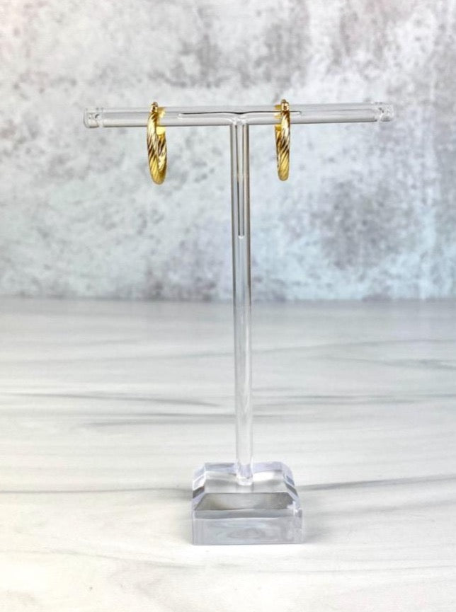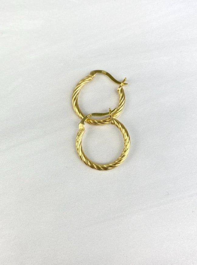 Beautiful Sterling Silver 925 14K Gold Plated Hoop Earrings with a Twisted Rope Design, JoEl handmade.