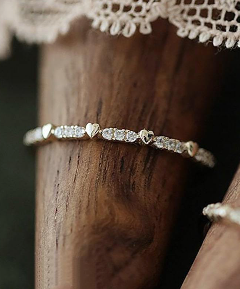 "Hearts" Rings with CZ Gold Plated Sterling Silver