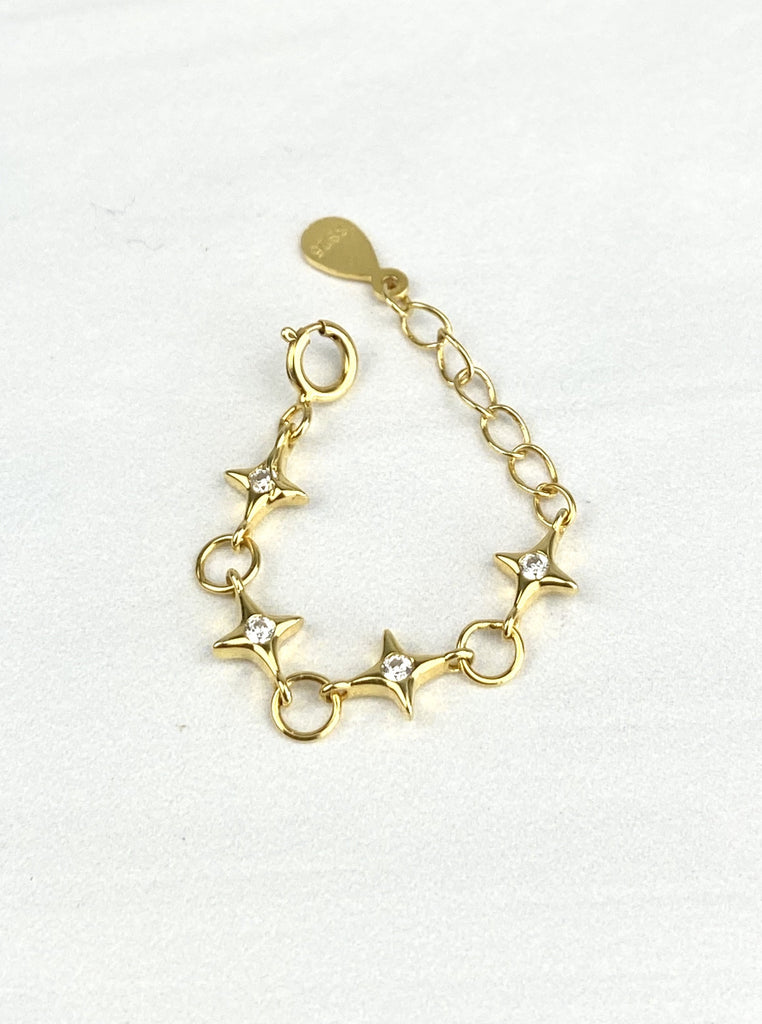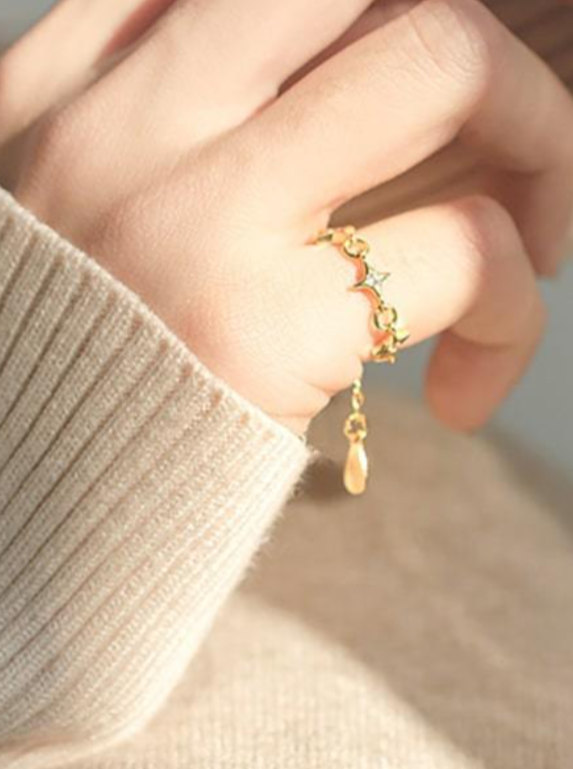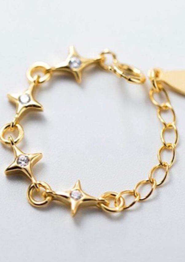 "Twinkle Star" Adjustable Sterling Silver 925 Gold Plated 14K Ring with White CZ Chevallier JoEl handmade.