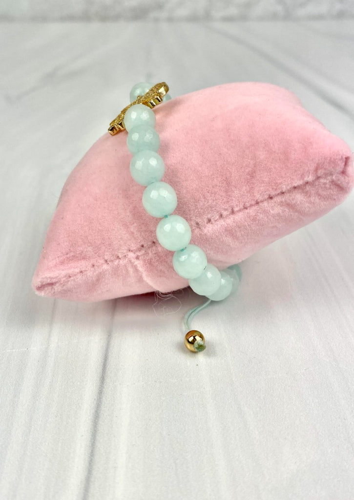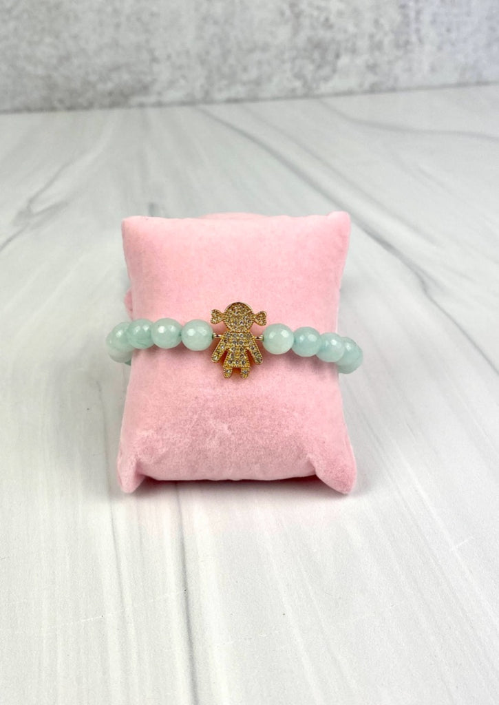 Faceted Aquamarine Gemstone Beads, Gold Plated Girl Motif with Pave CZ JoEl handmade