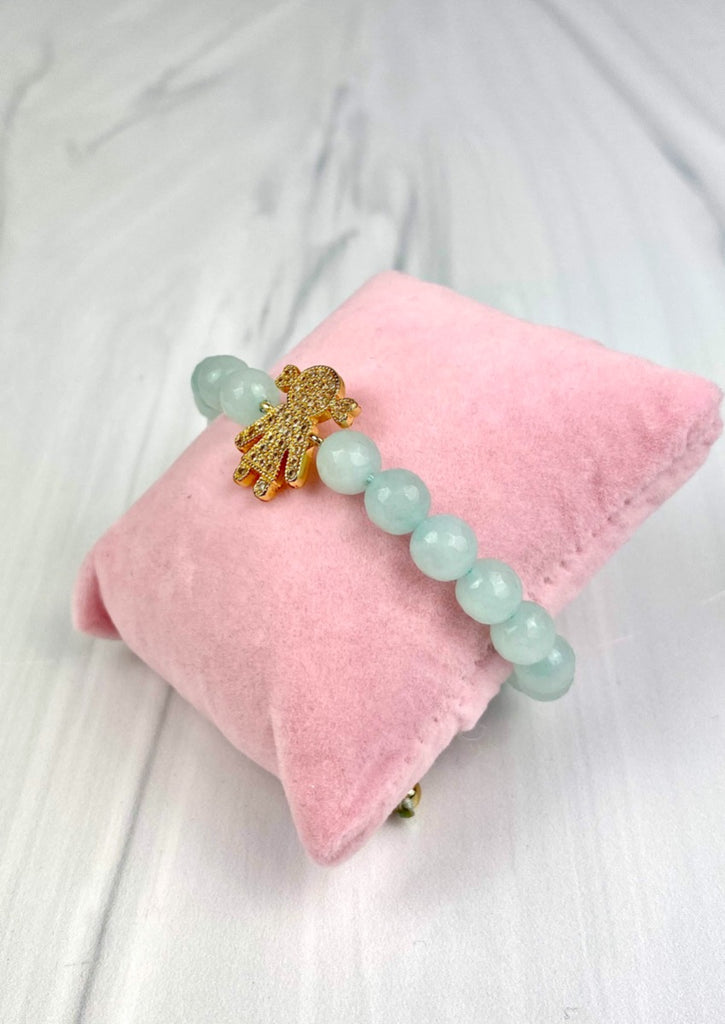 Faceted Aquamarine Gemstone Beads, Gold Plated Girl Motif with Pave CZ Joel handmade