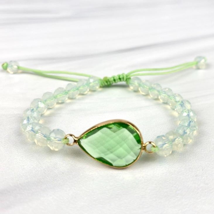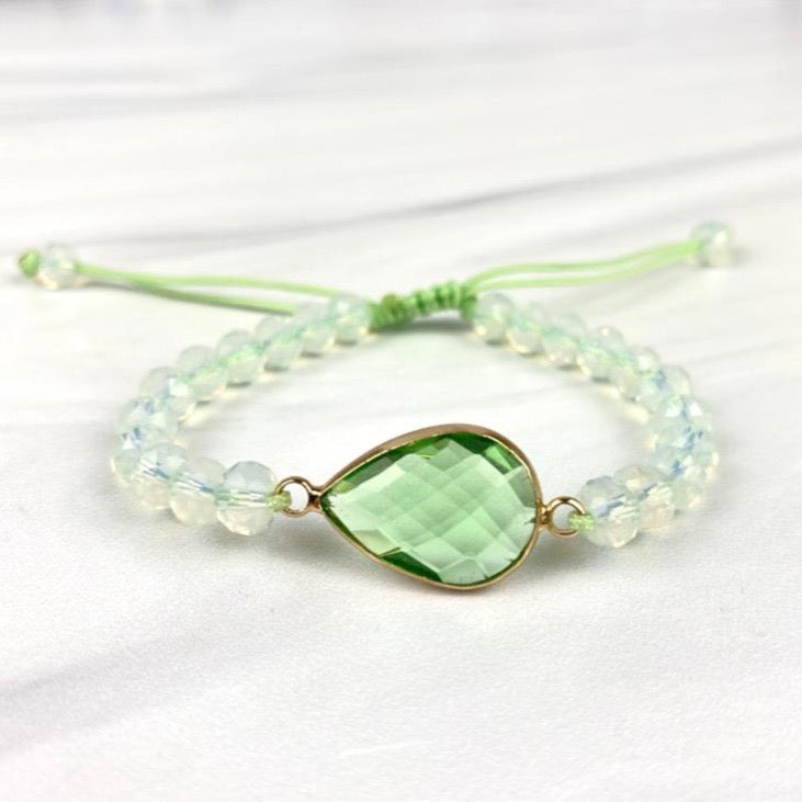 Moonstone Faceted Gemstone Macrame Adjustable Bracelet in Lime Green